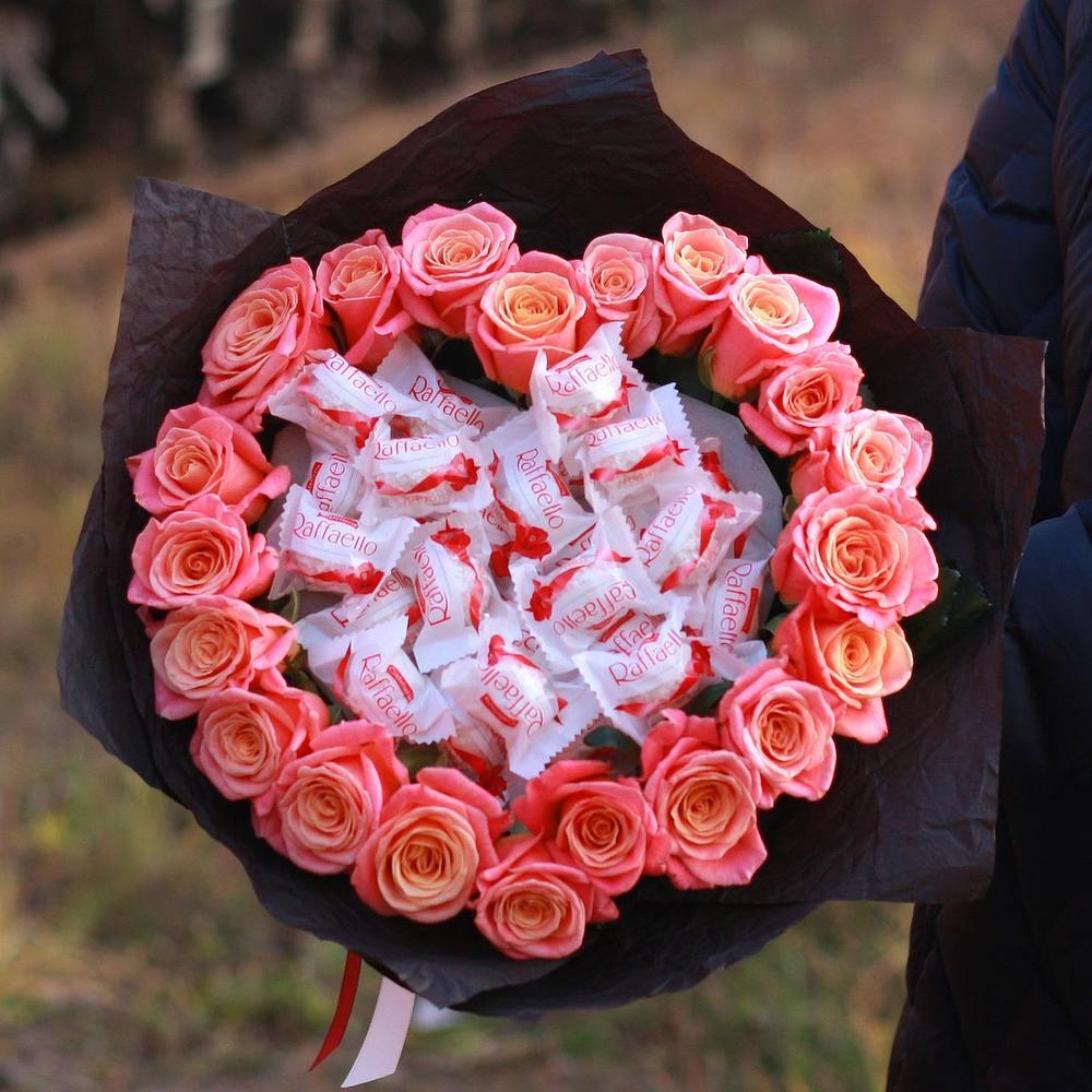 Букет из розовых мыльных роз с конфетами Рафаэлло – купить за 15 000 ₽ | SoOlcom