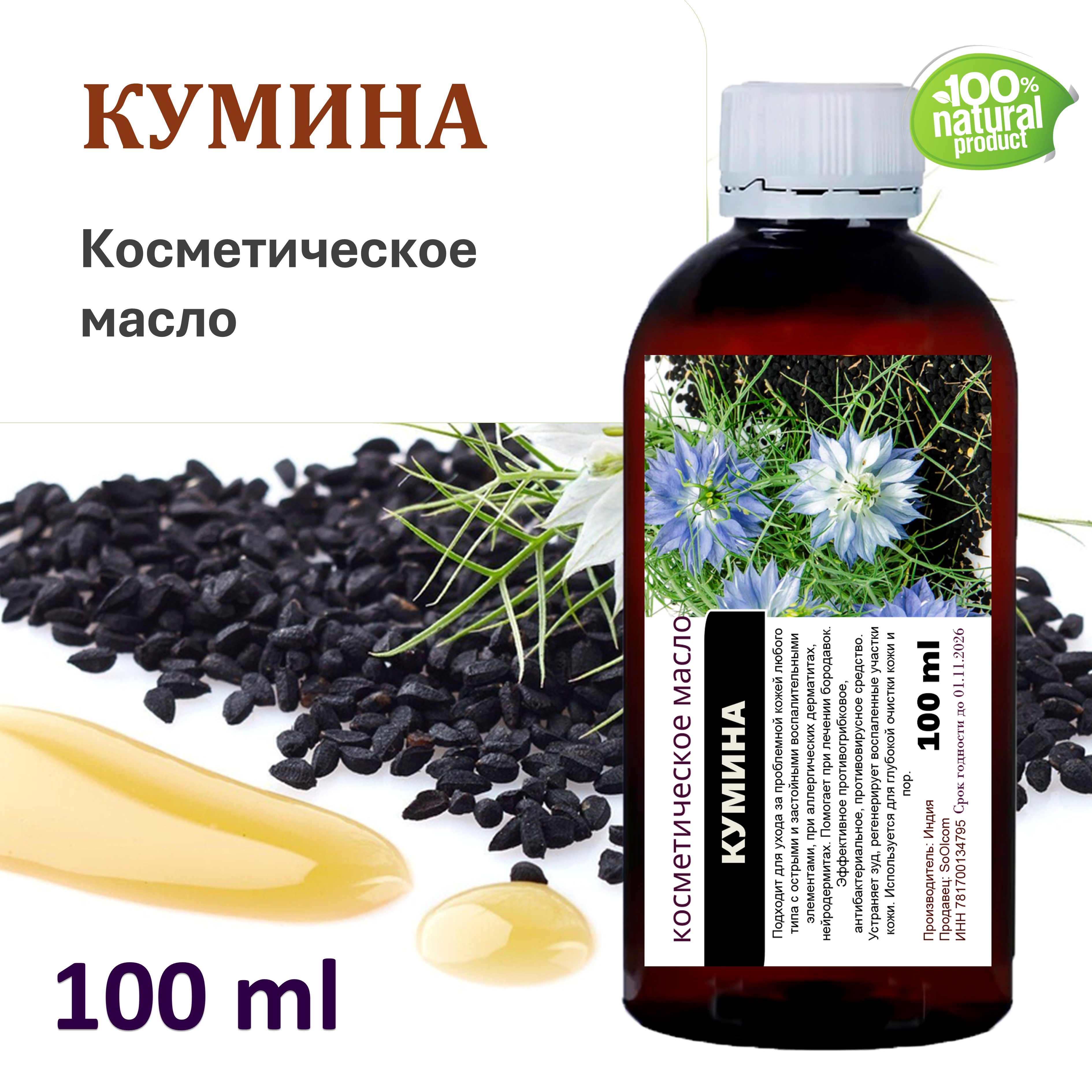 МАСЛО КУМИНА подходит для ухода за проблемной кожей любого типа с острыми и застойными воспалительными элементами, при аллергических дерматитах, нейродермитах.